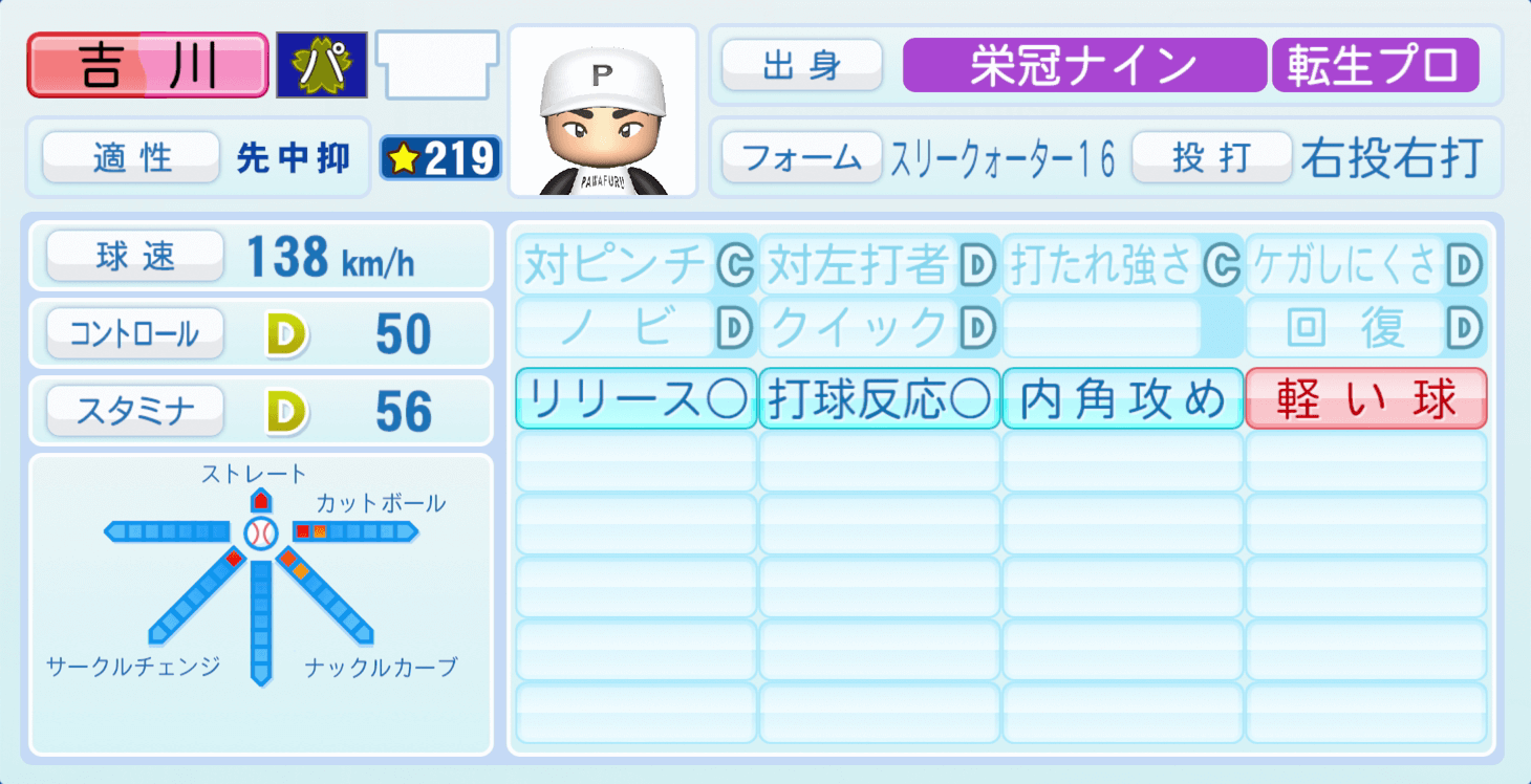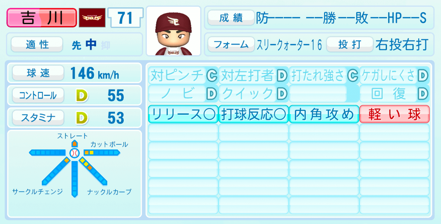 【パワプロ2022】吉川雄大の選手・特殊能力と転生情報|楽天