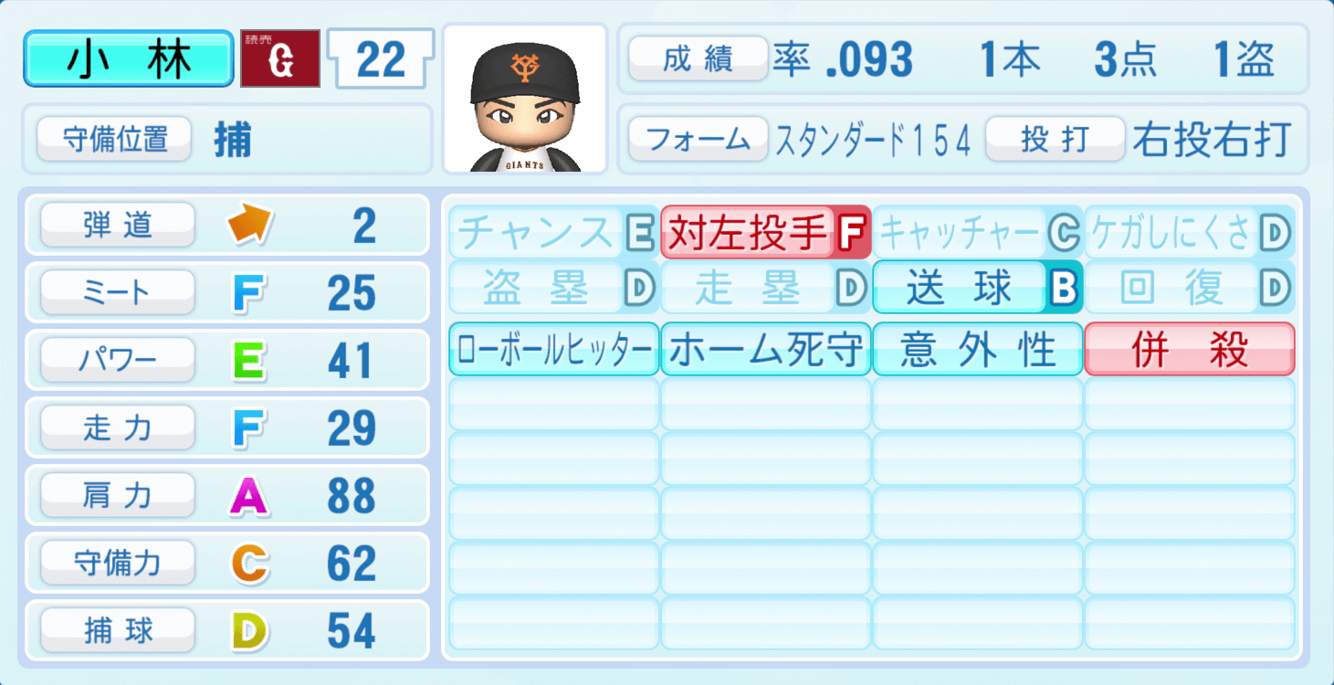 【パワプロ2022】小林誠司の選手・特殊能力と転生情報|巨人