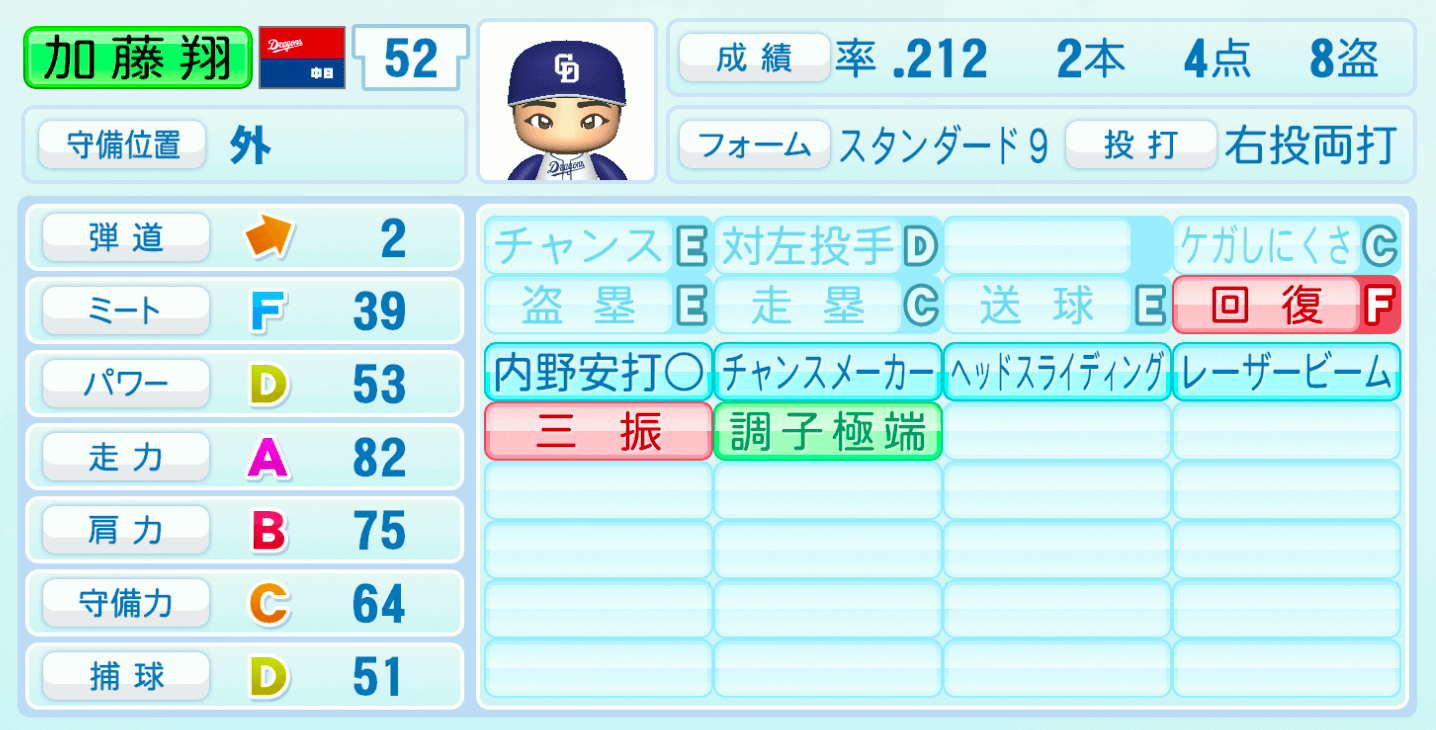 | ケガしにくさC | 盗塁E |