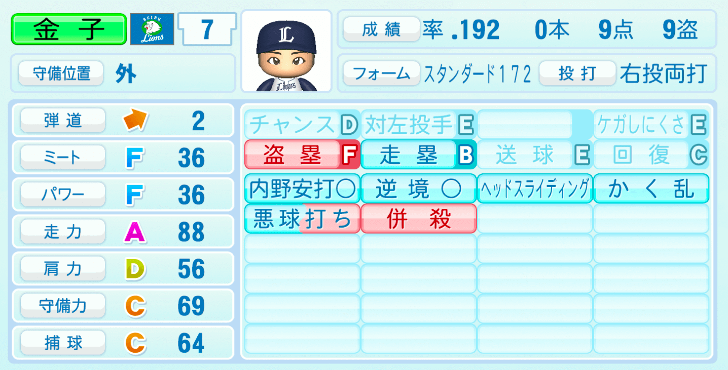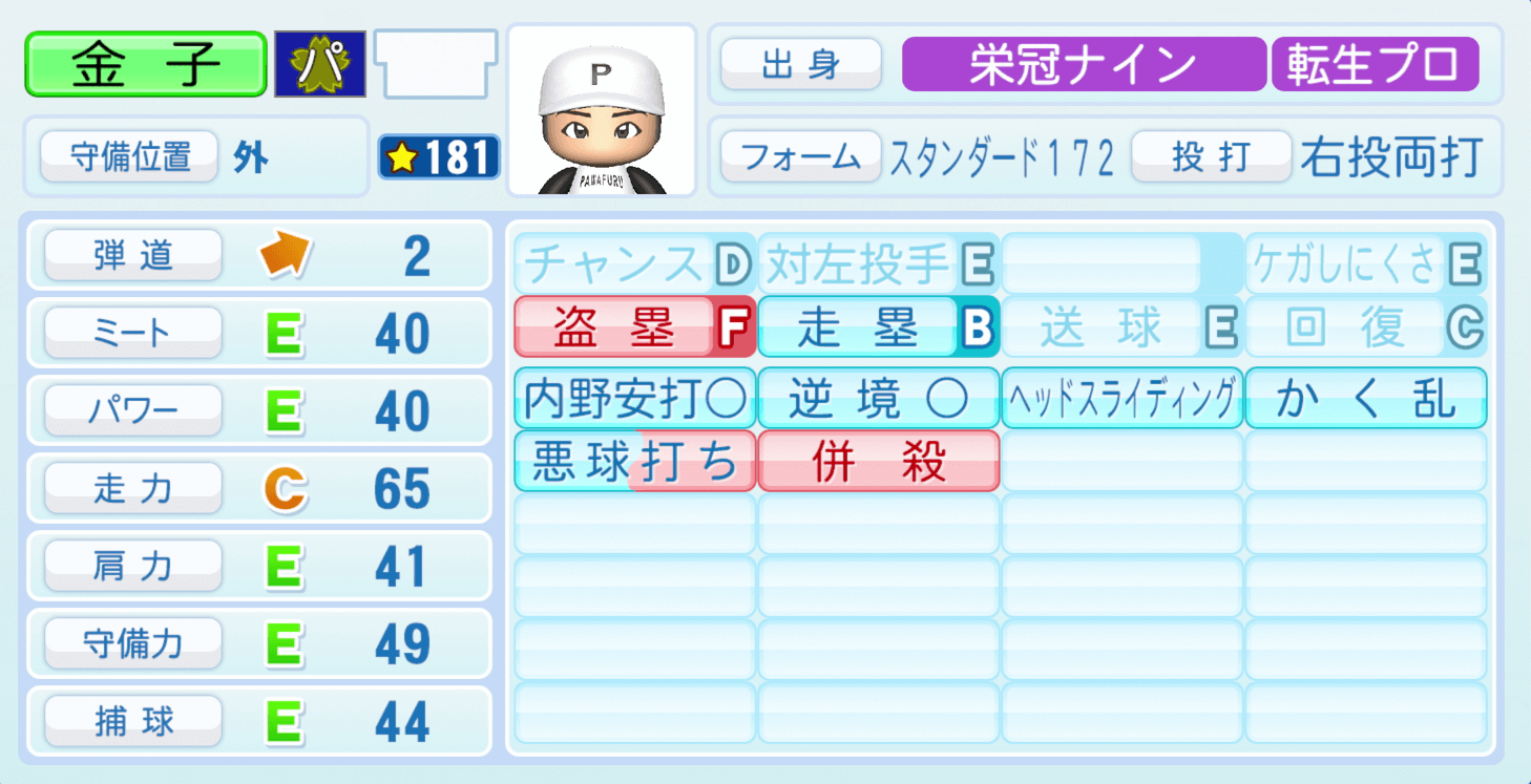 | ケガしにくさE | 走塁B |