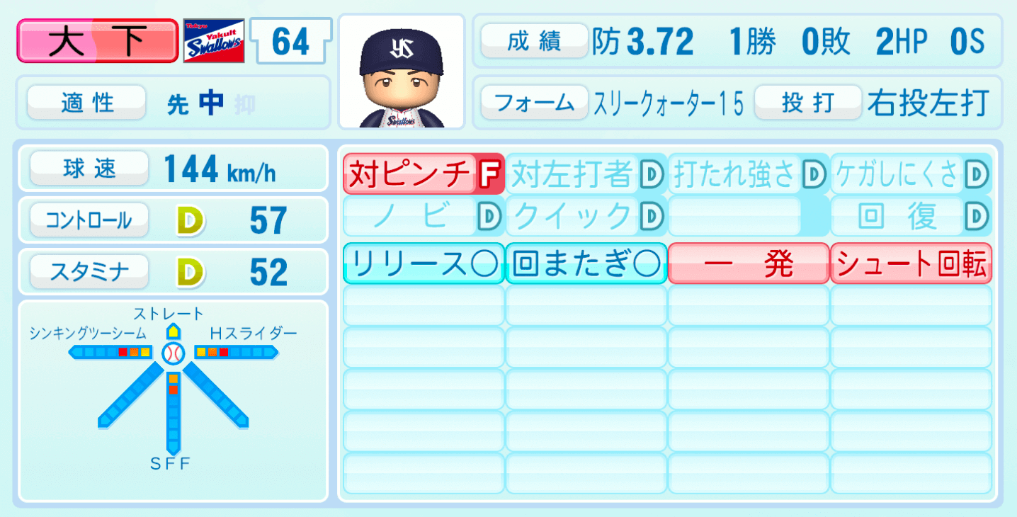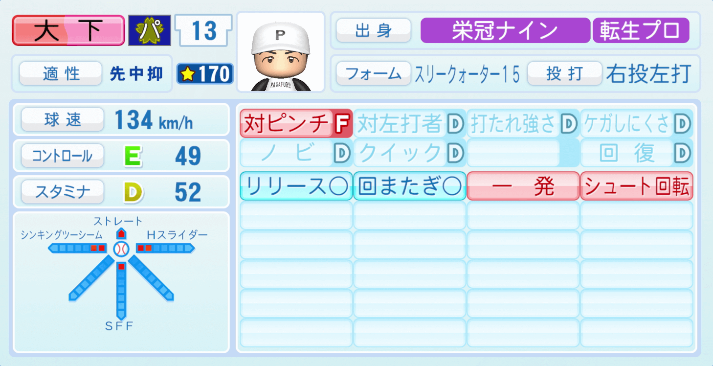 【パワプロ2022】大下佑馬の選手・特殊能力と転生情報