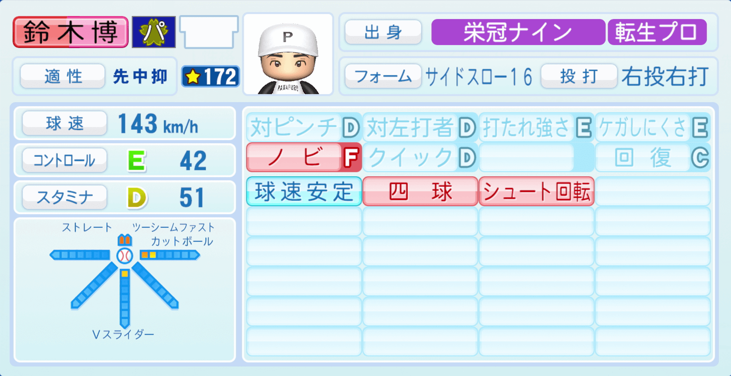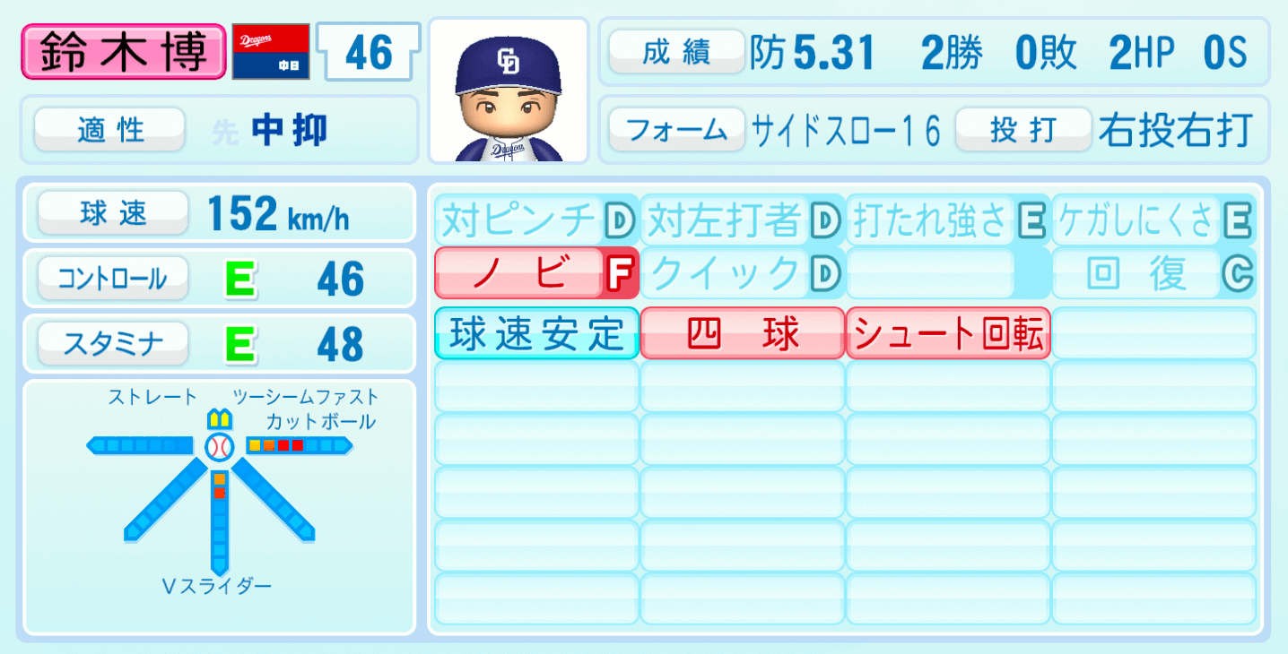 | 適性 | 中抑/- | 球速 | 152km/h |