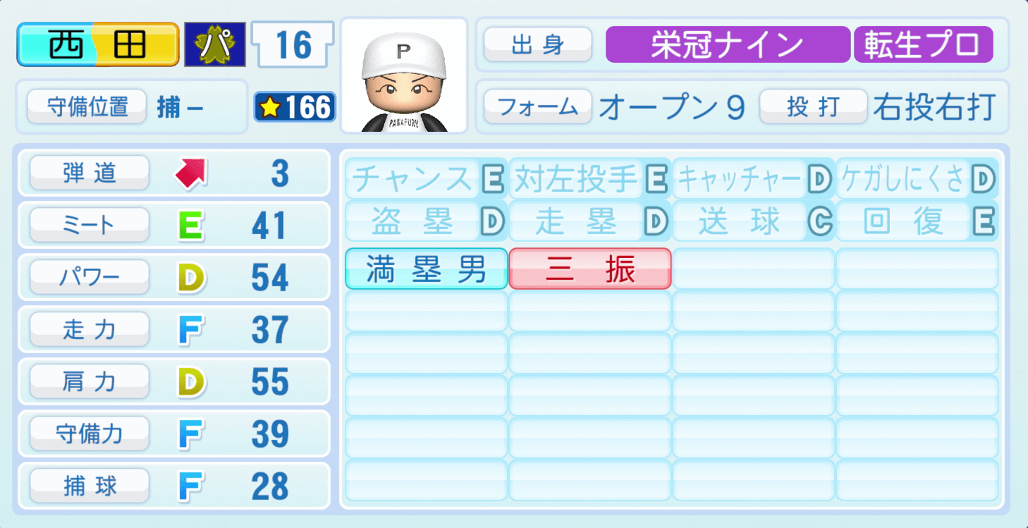 【パワプロ2022】西田明央の選手・特殊能力と転生情報