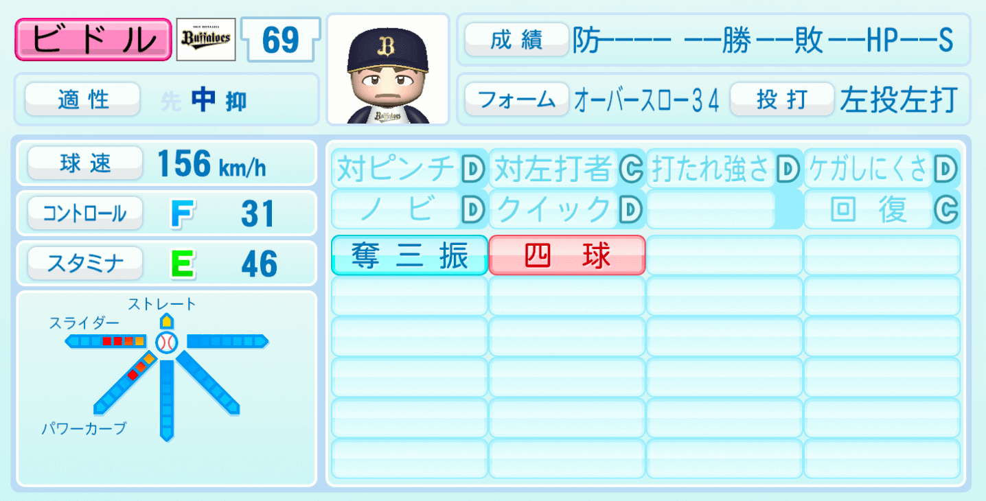 | 適性 | 中/抑 | 球速 | 156km/h |