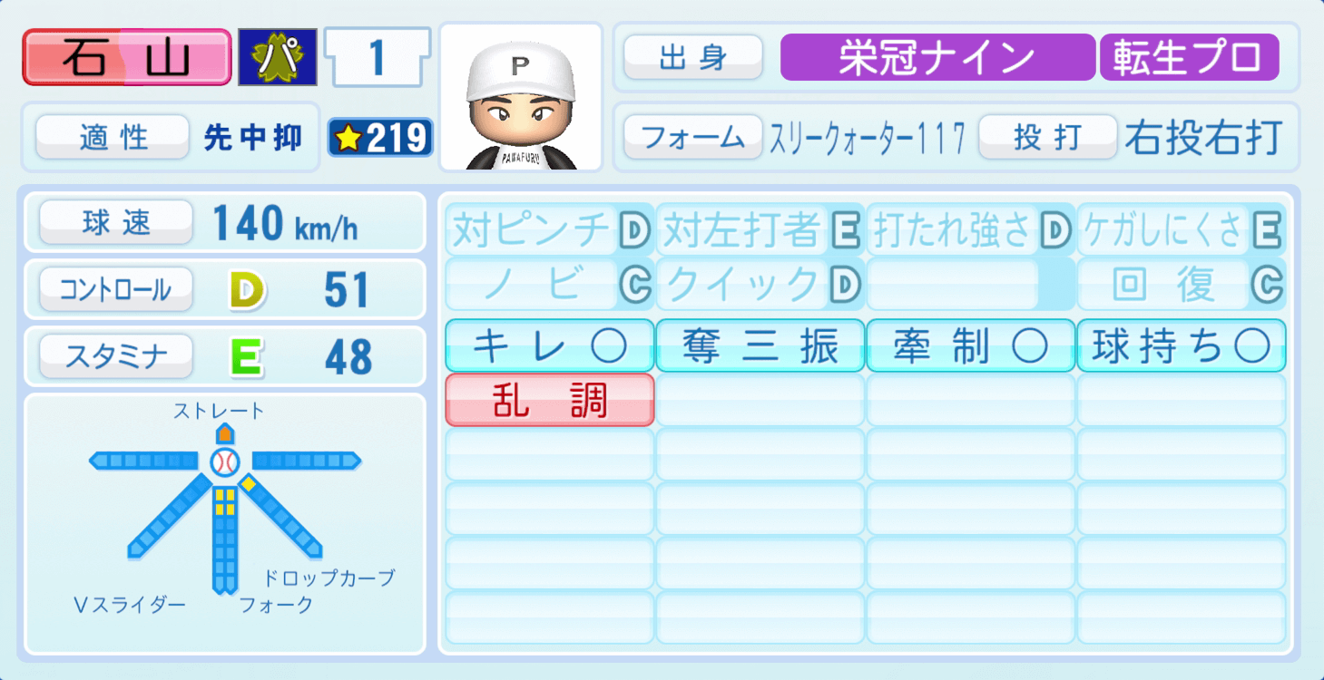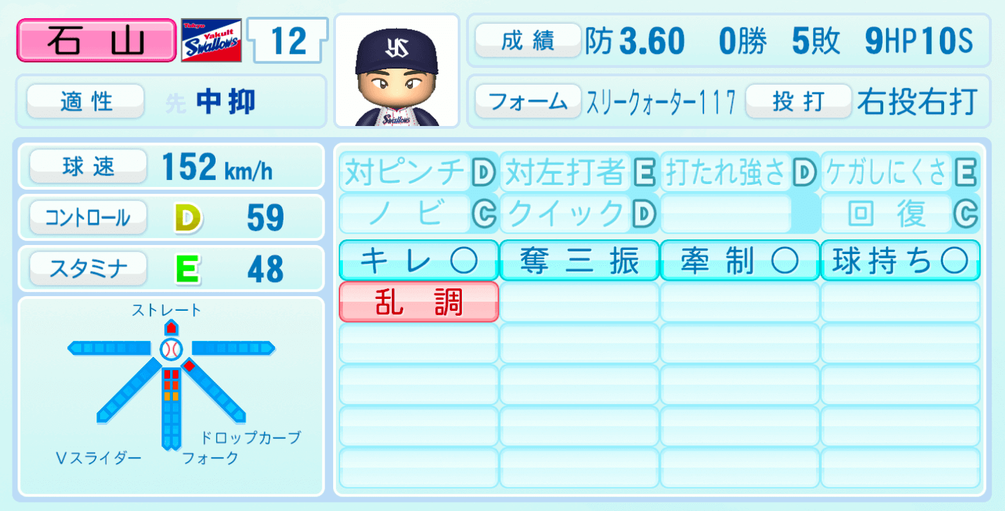| 適性 | 中抑/- | 球速 | 152km/h |