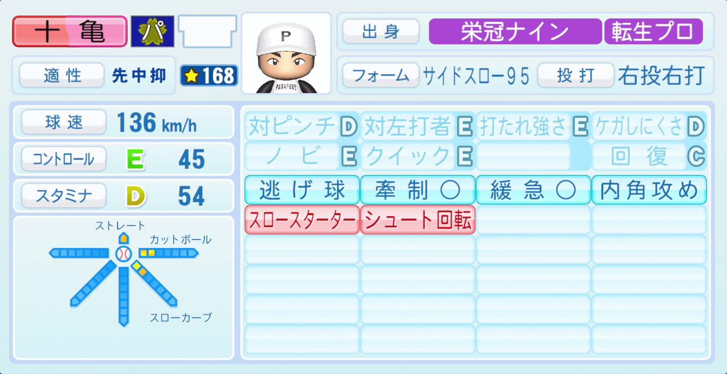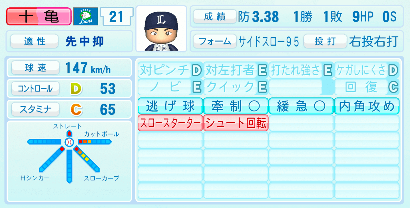 | 適性 | 先中抑/- | 球速 | 147km/h |