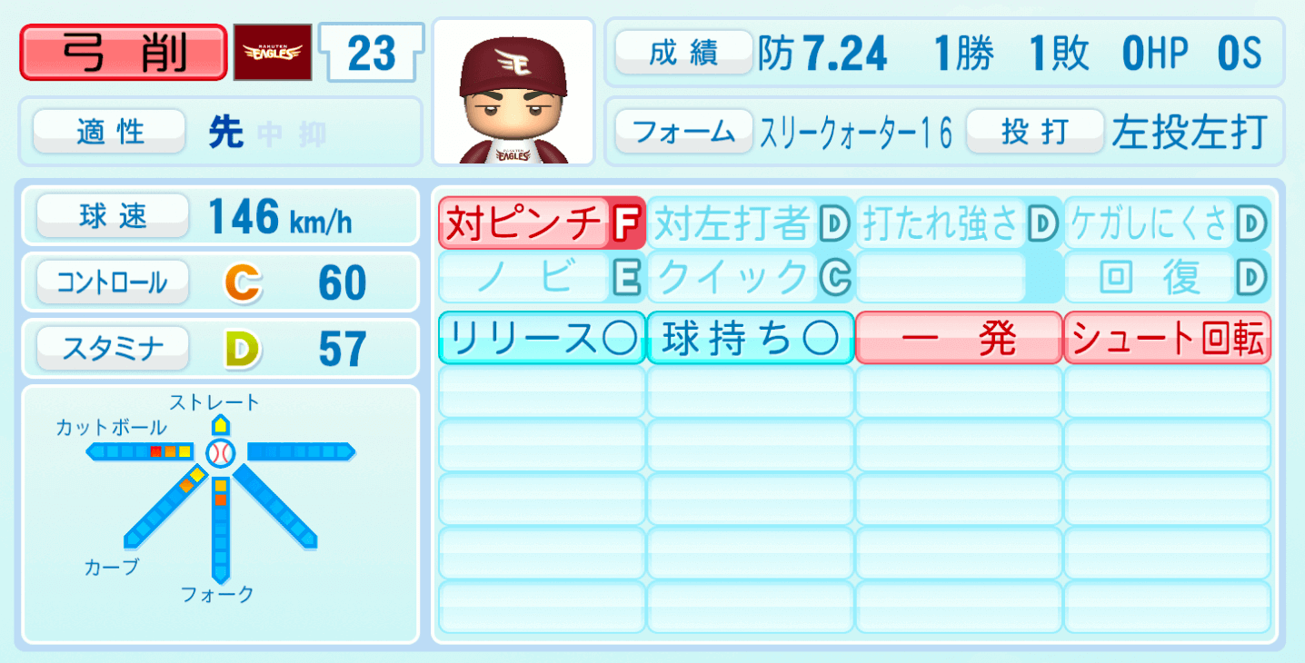 | 適性 | - | 球速 | 146km/h |