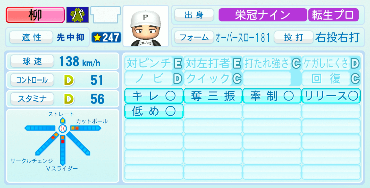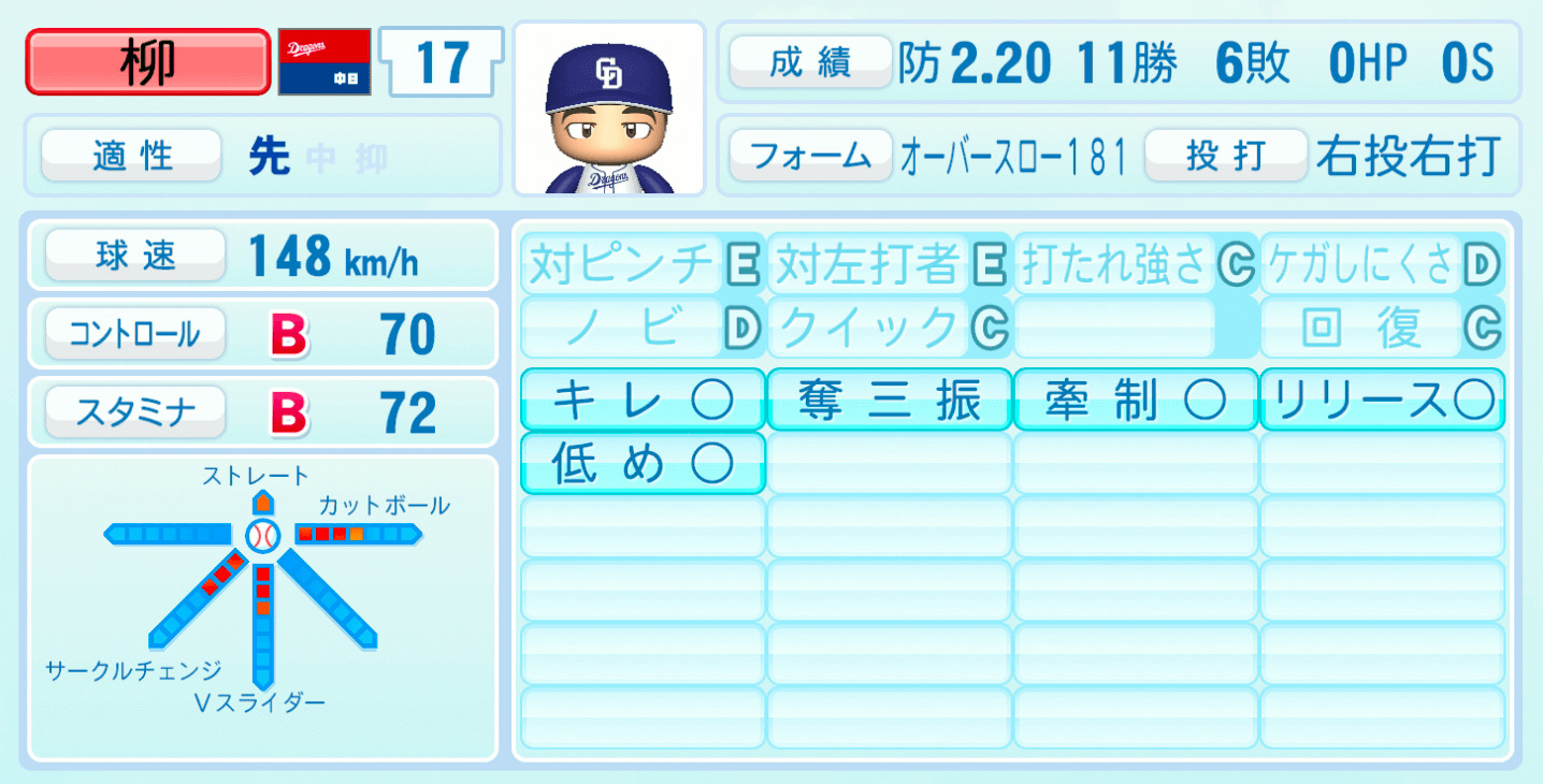 【パワプロ2022】柳裕也の選手・特殊能力と転生情報|中日