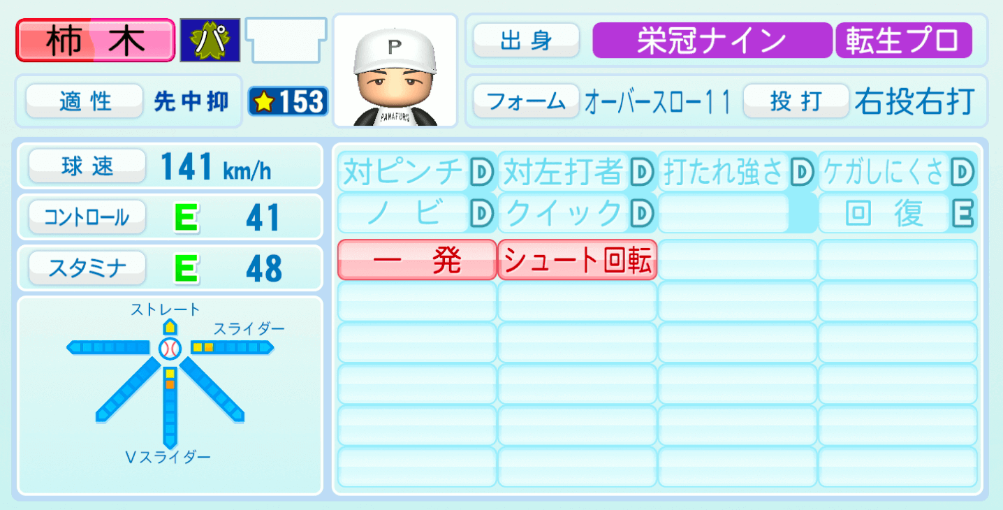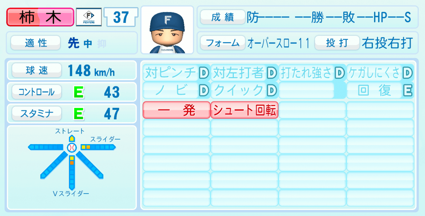 | 適性 | 先/中 | 球速 | 148km/h |