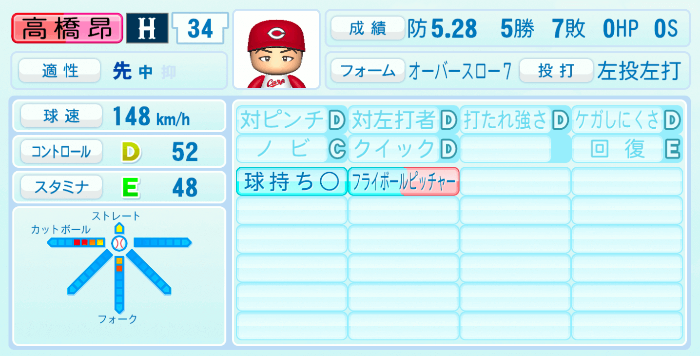 【パワプロ2022】高橋昂也の選手・特殊能力と転生情報|広島