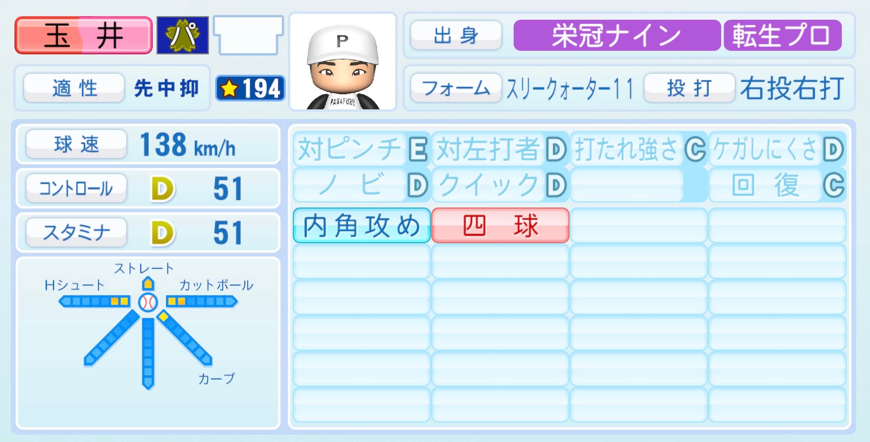 玉井大翔の投手能力