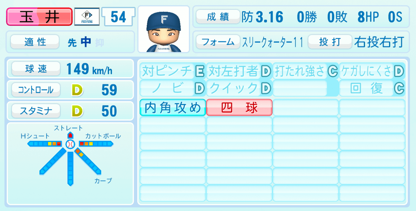 | 適性 | 中/先 | 球速 | 149km/h |