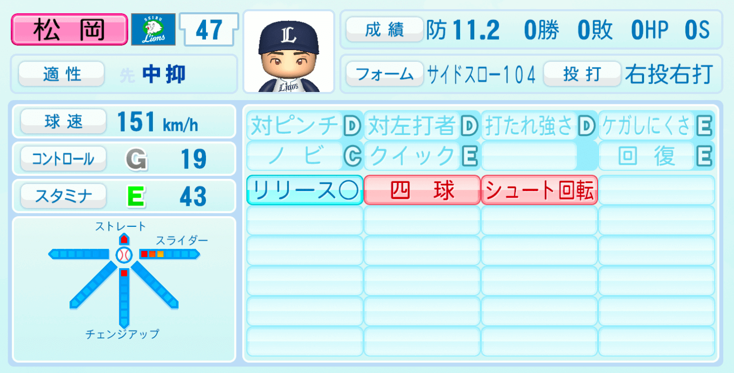 | 適性 | 中抑/- | 球速 | 151km/h |