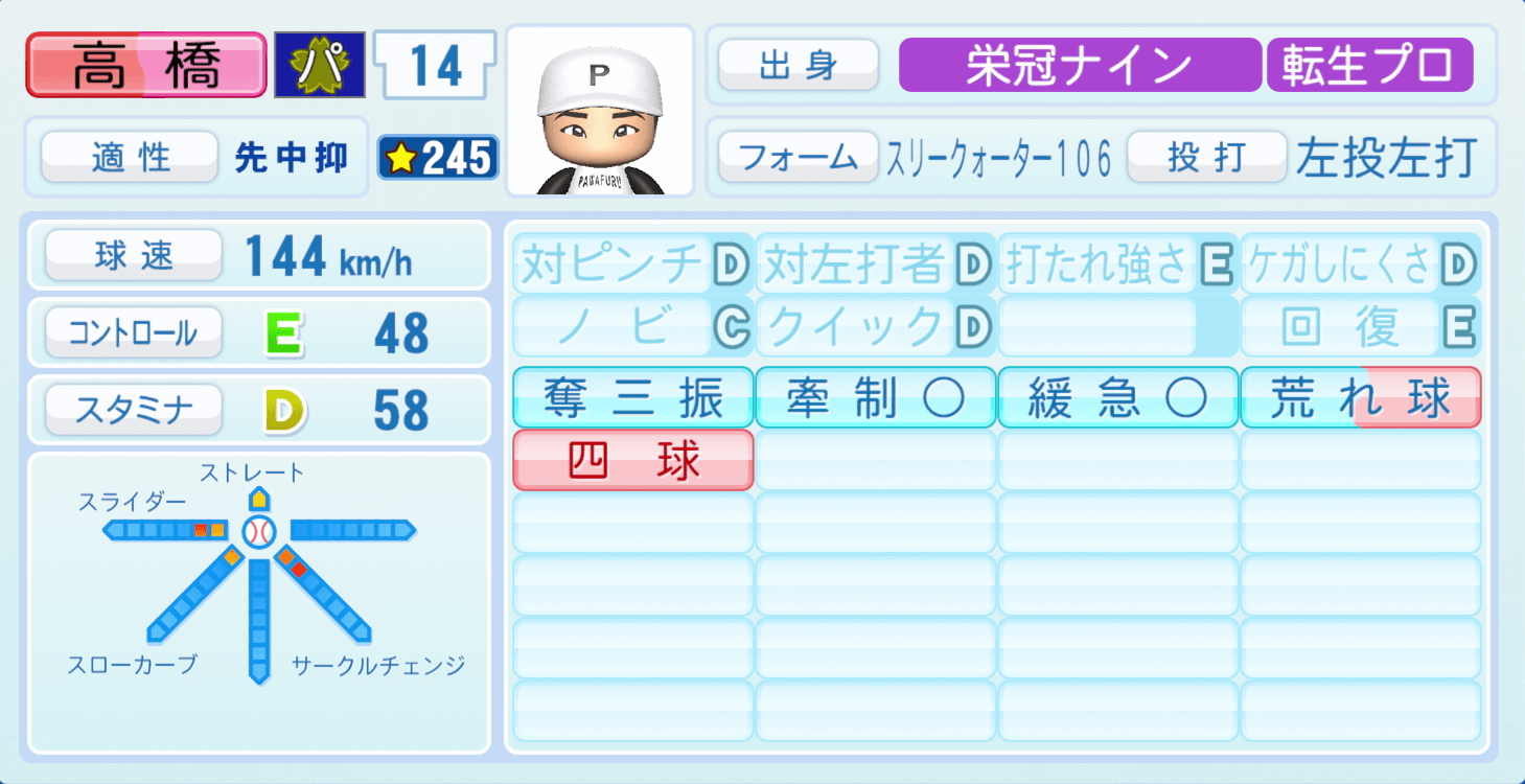【パワプロ2022】高橋奎二の選手・特殊能力と転生情報