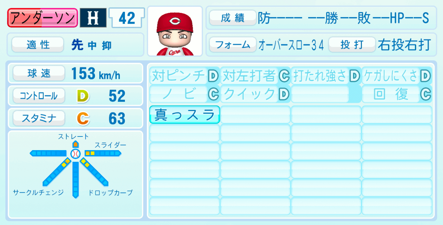 | 適性 | 先/- | 球速 | 153km/h |