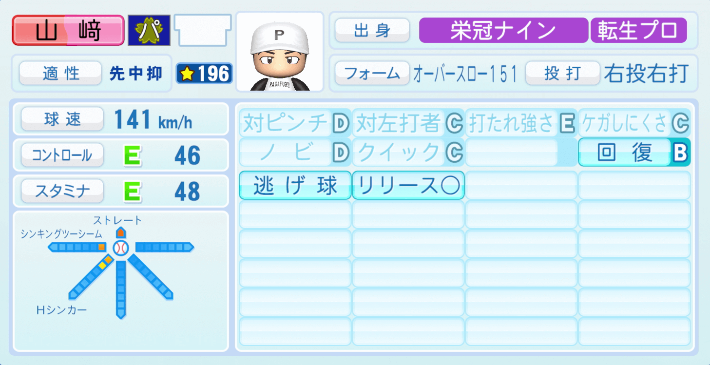 | 適性 | 中/抑 | 球速 | 153km/h |
