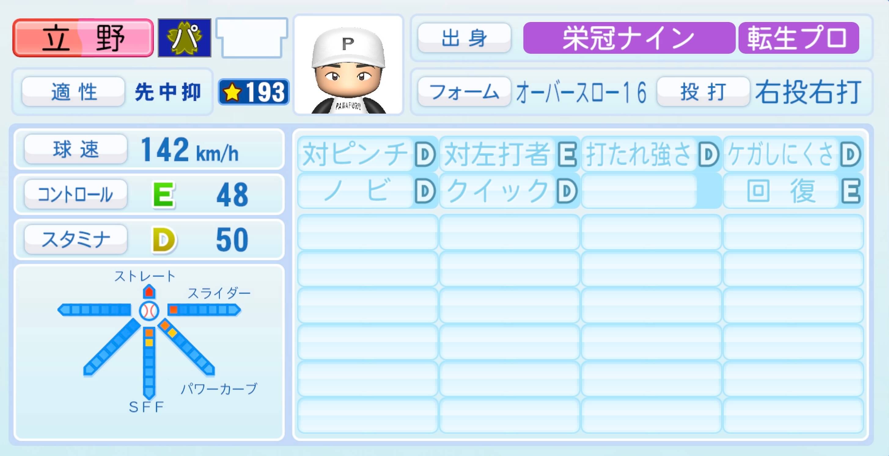 | 適性 | 先/中抑 | 球速 | 149km/h |