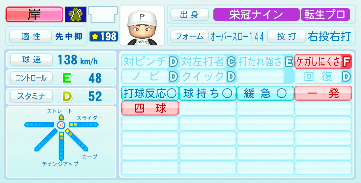 【パワプロ2022】岸孝之の選手・特殊能力と転生情報|楽天