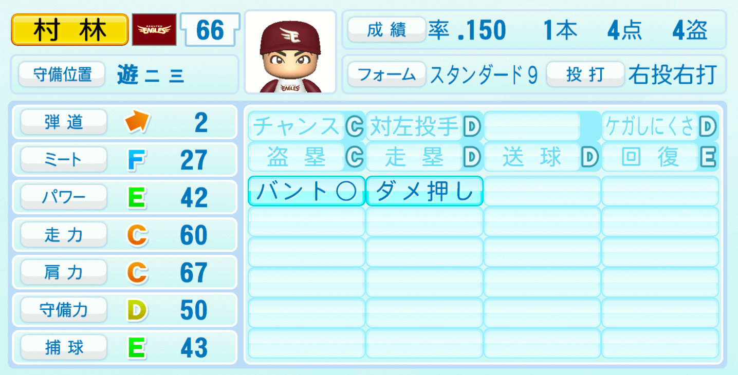 | ケガしにくさD | 盗塁C |