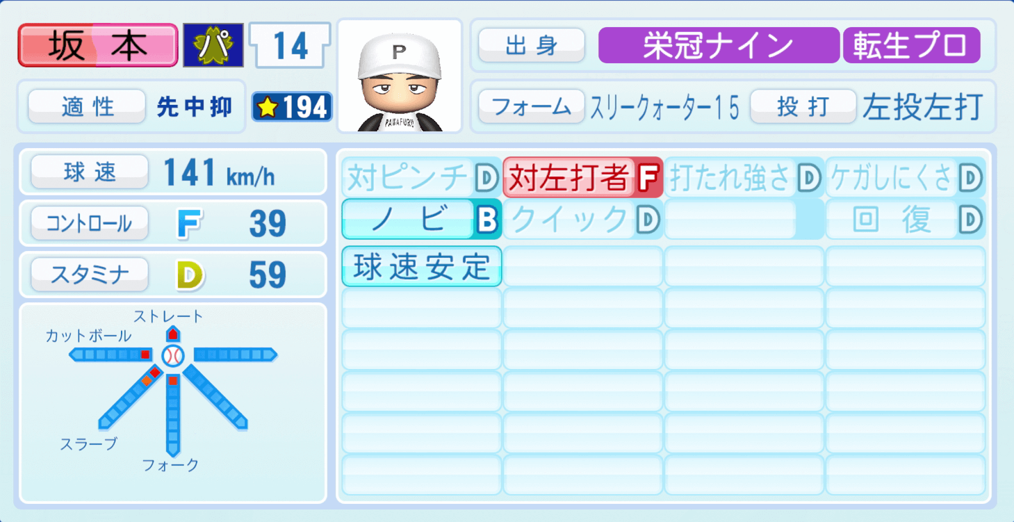 【パワプロ2022】坂本光士郎の選手・特殊能力と転生情報