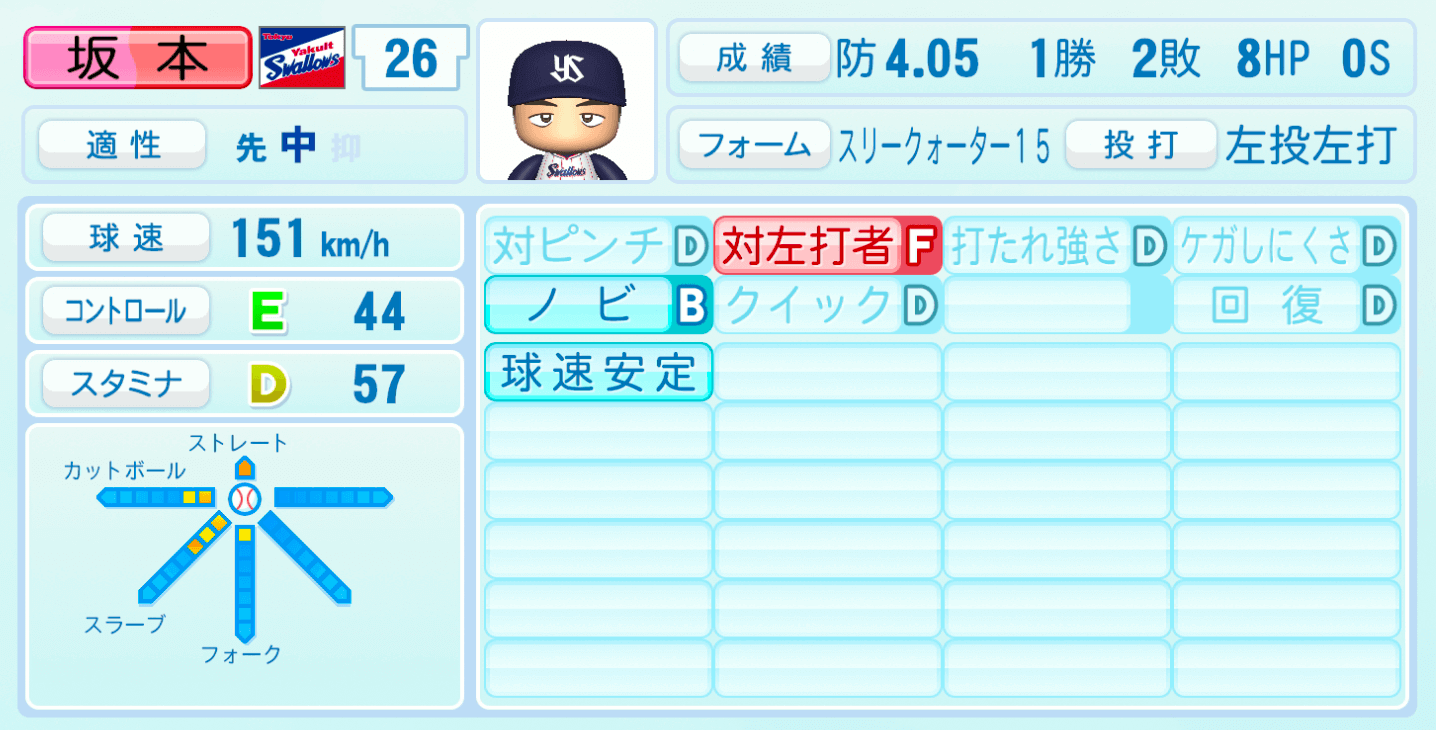 パワプロ2022における坂本光士郎(球団選手)の投手や野手能力、金特などの特殊能力を掲載。転生OBの年代や都道府県、入手方法についても解説しているので、パワプロ2022を攻略する際の参考にどうぞ。