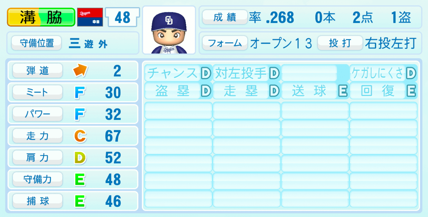 | ケガしにくさD | 盗塁D |