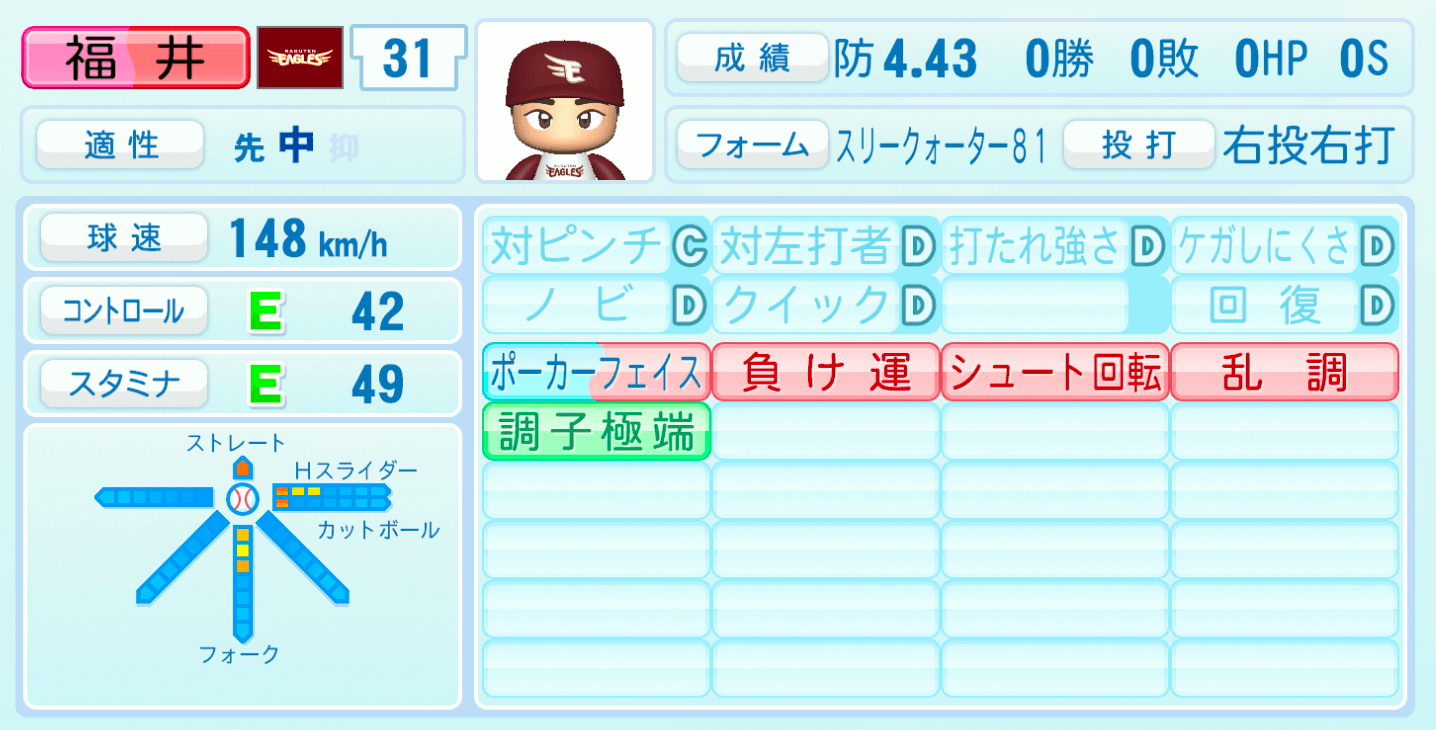 【パワプロ2022】福井優也の選手・特殊能力と転生情報|楽天