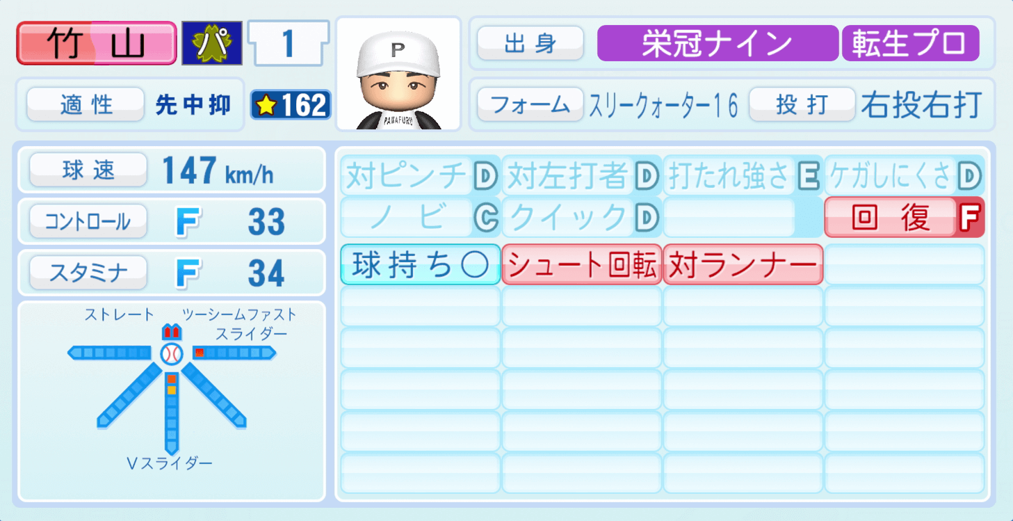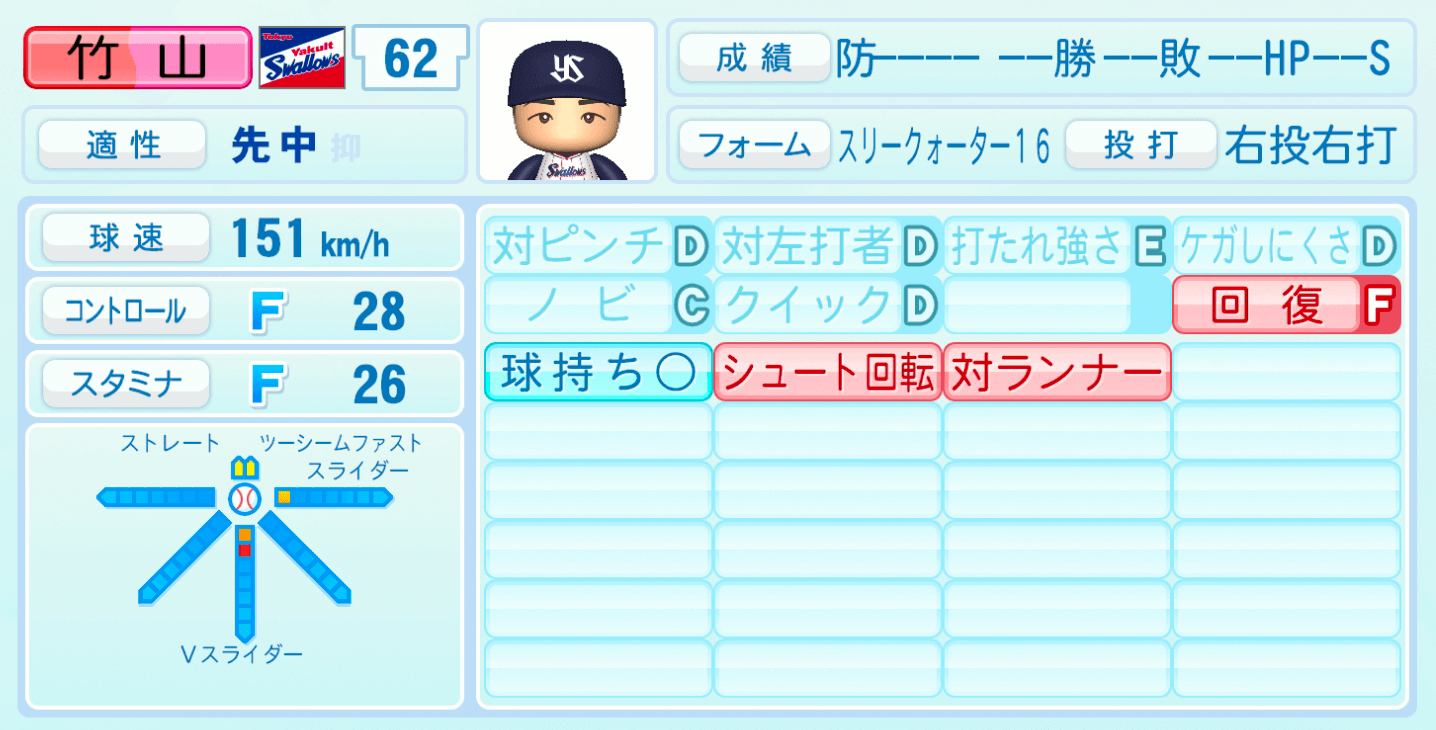 | 適性 | 先中/- | 球速 | 151km/h |