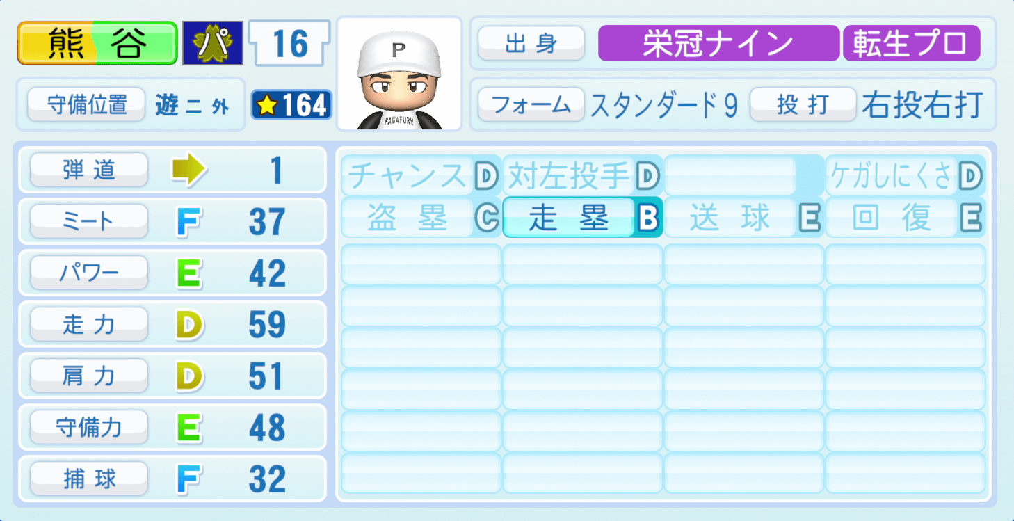 | ケガしにくさD | 盗塁C |