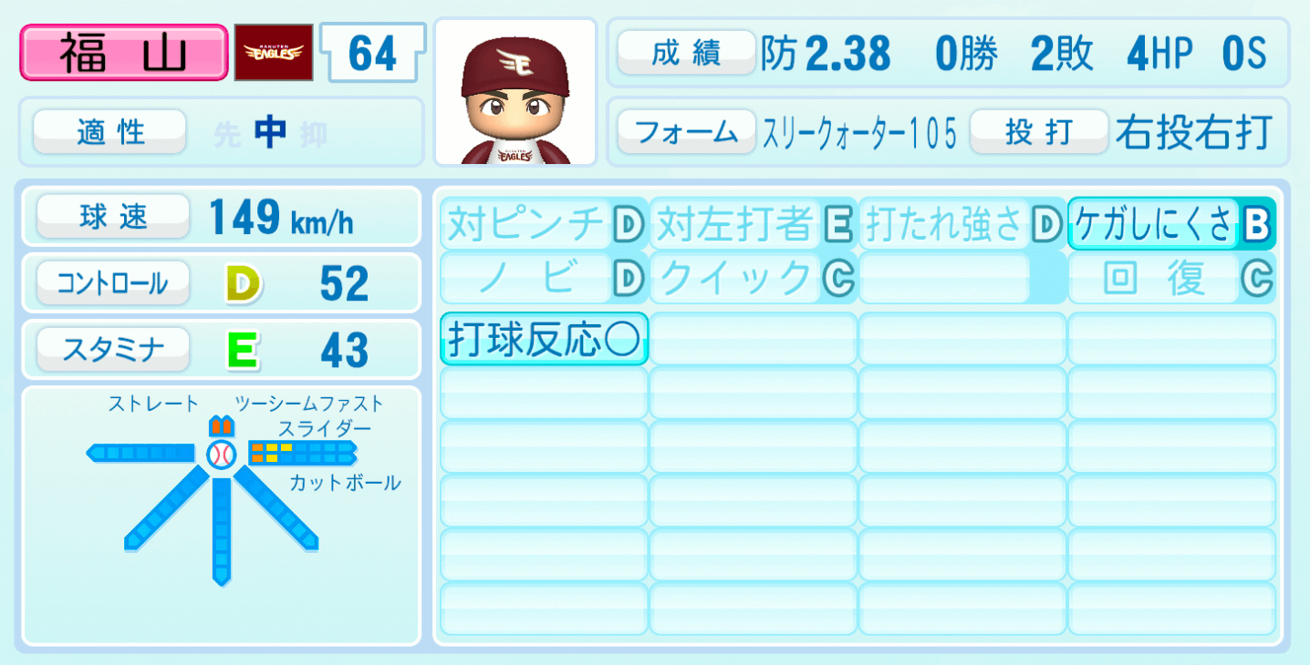| 適性 | - | 球速 | 149km/h |