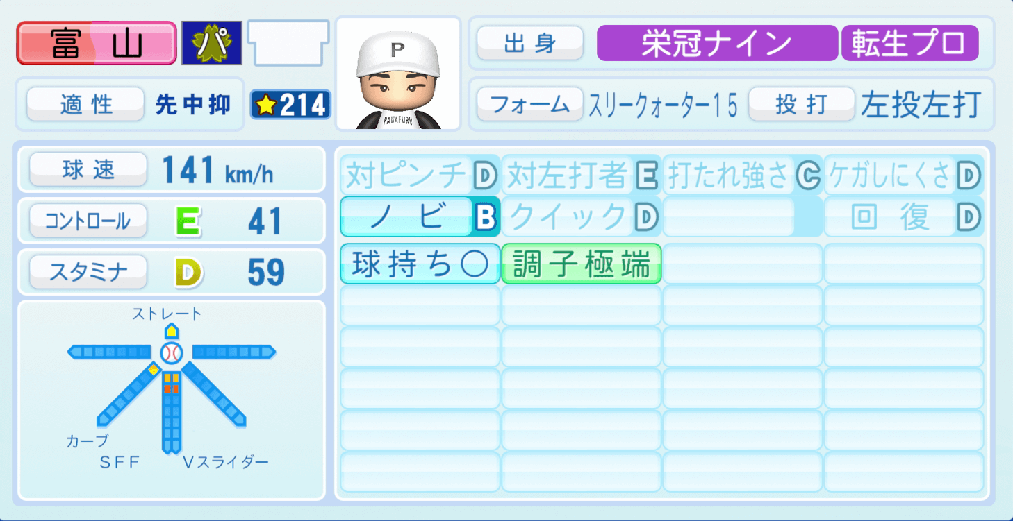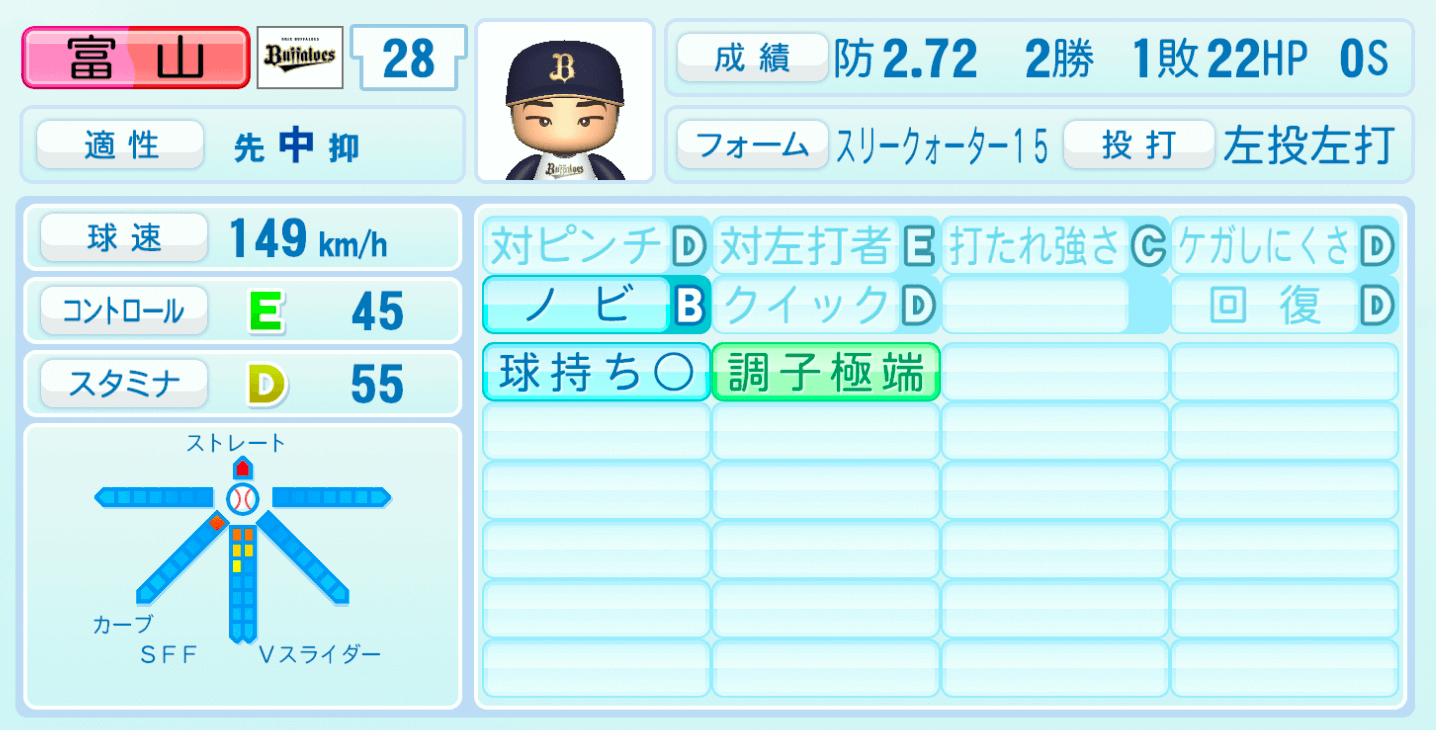 | 適性 | 中/先抑 | 球速 | 149km/h |
