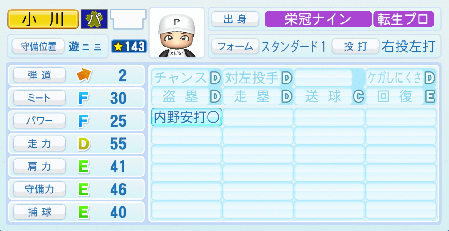 【パワプロ2022】小川龍成の選手・特殊能力と転生情報