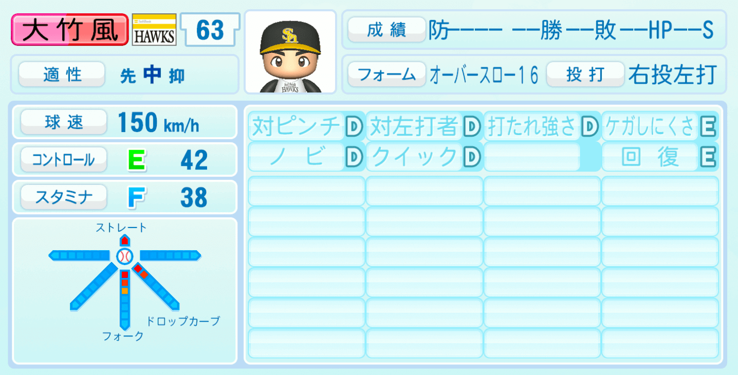 | 適性 | 中/先抑 | 球速 | 150km/h |