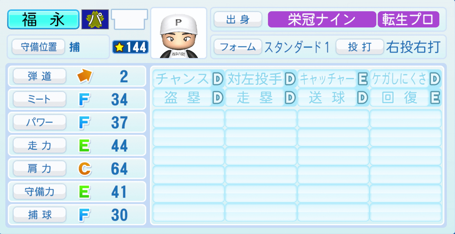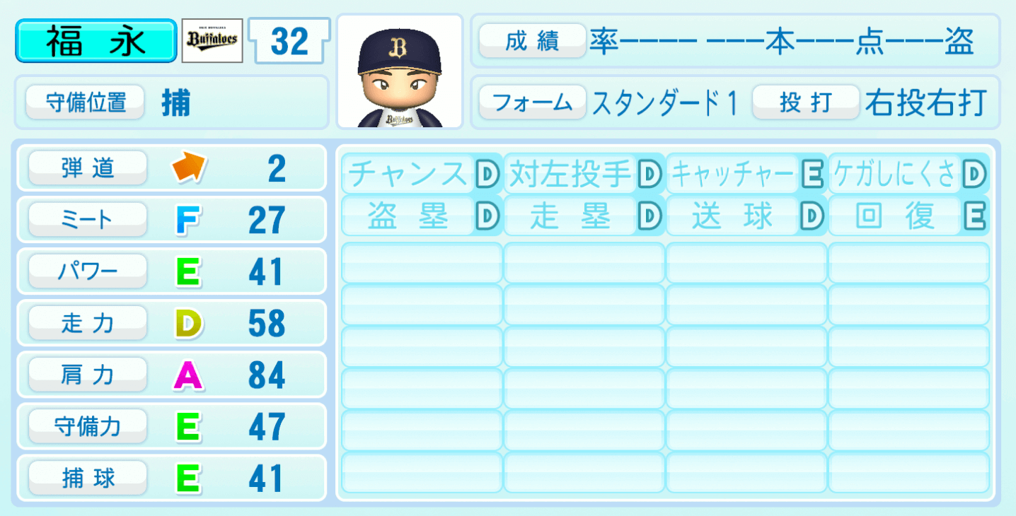 | キャッチャーE | ケガしにくさD |