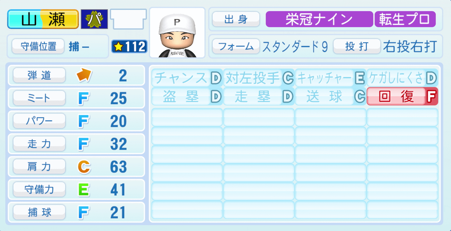 | 打たれ強さC | ケガしにくさD |