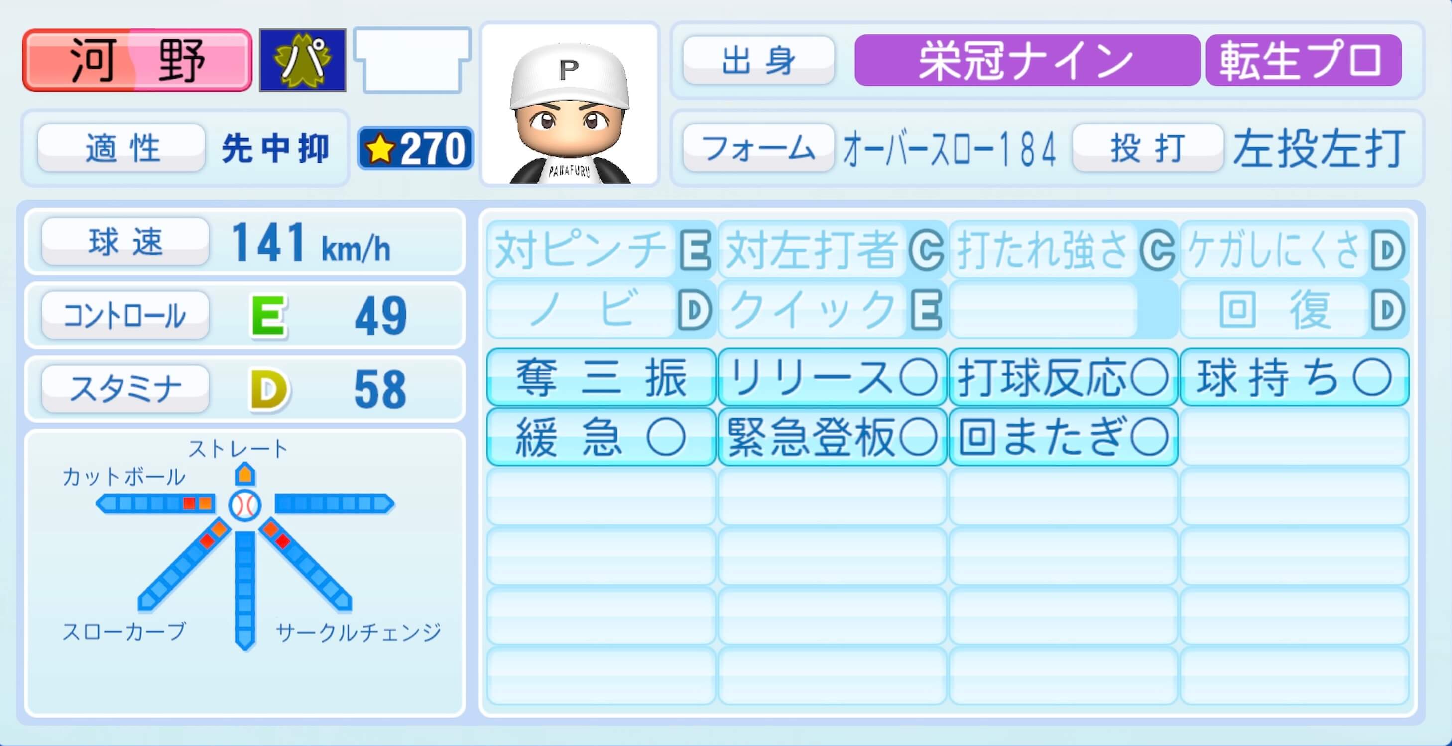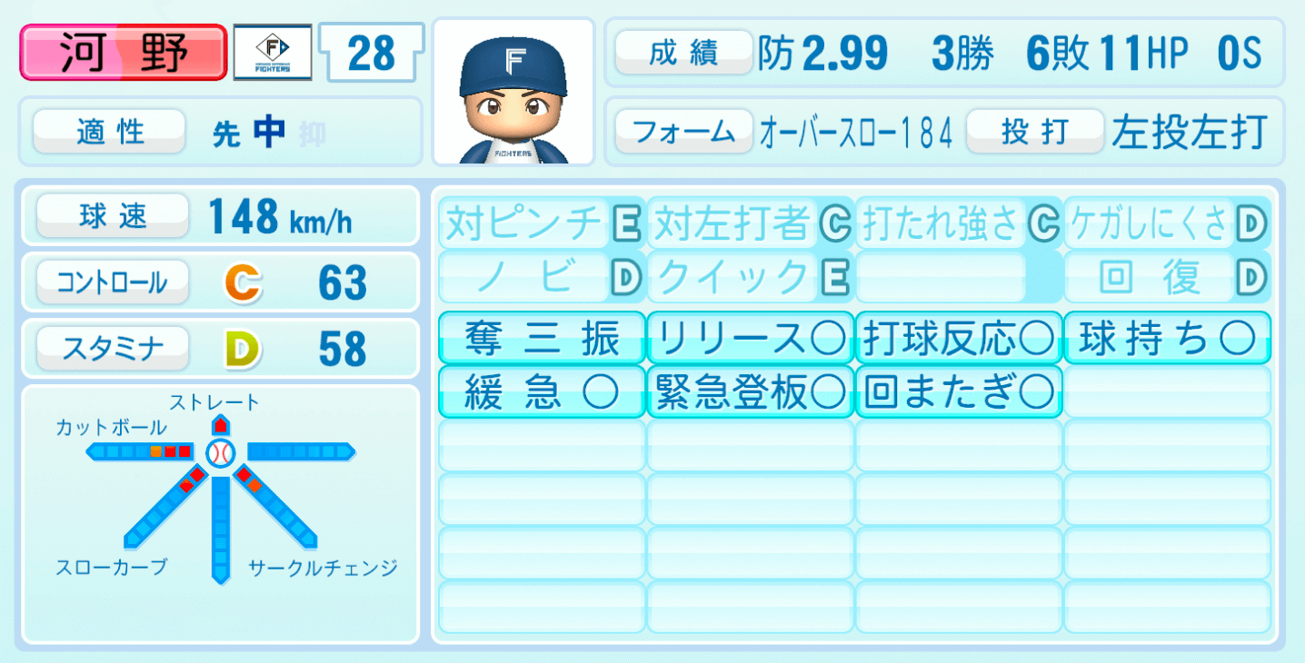 【パワプロ2022】河野竜生の選手・特殊能力と転生情報|日本ハム