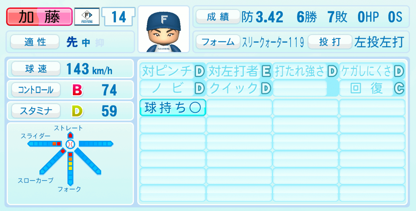 【パワプロ2022】加藤貴之の選手・特殊能力と転生情報|日本ハム