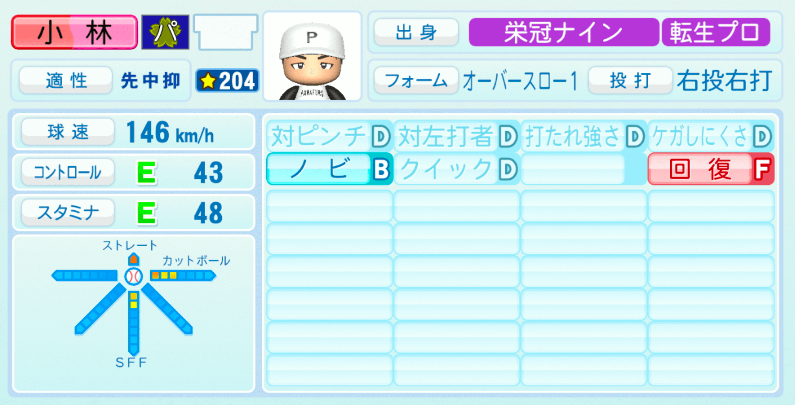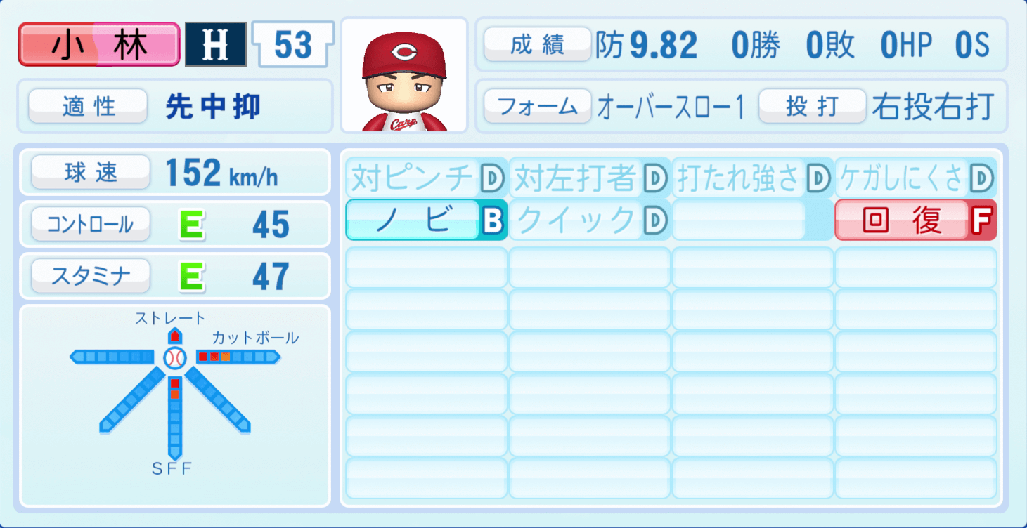 | 適性 | 先中抑/- | 球速 | 152km/h |
