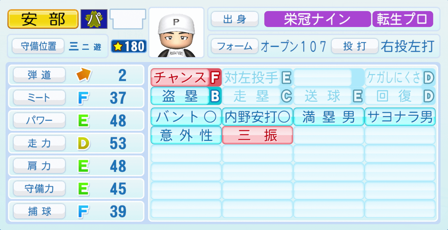 | 対左投手E | ケガしにくさD |