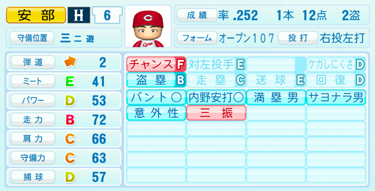 【パワプロ2022】安部友裕の選手・特殊能力と転生情報|広島