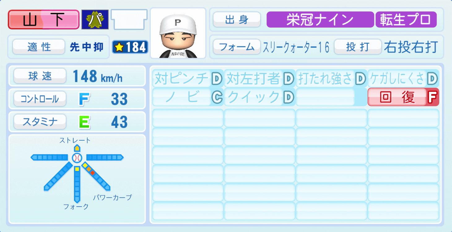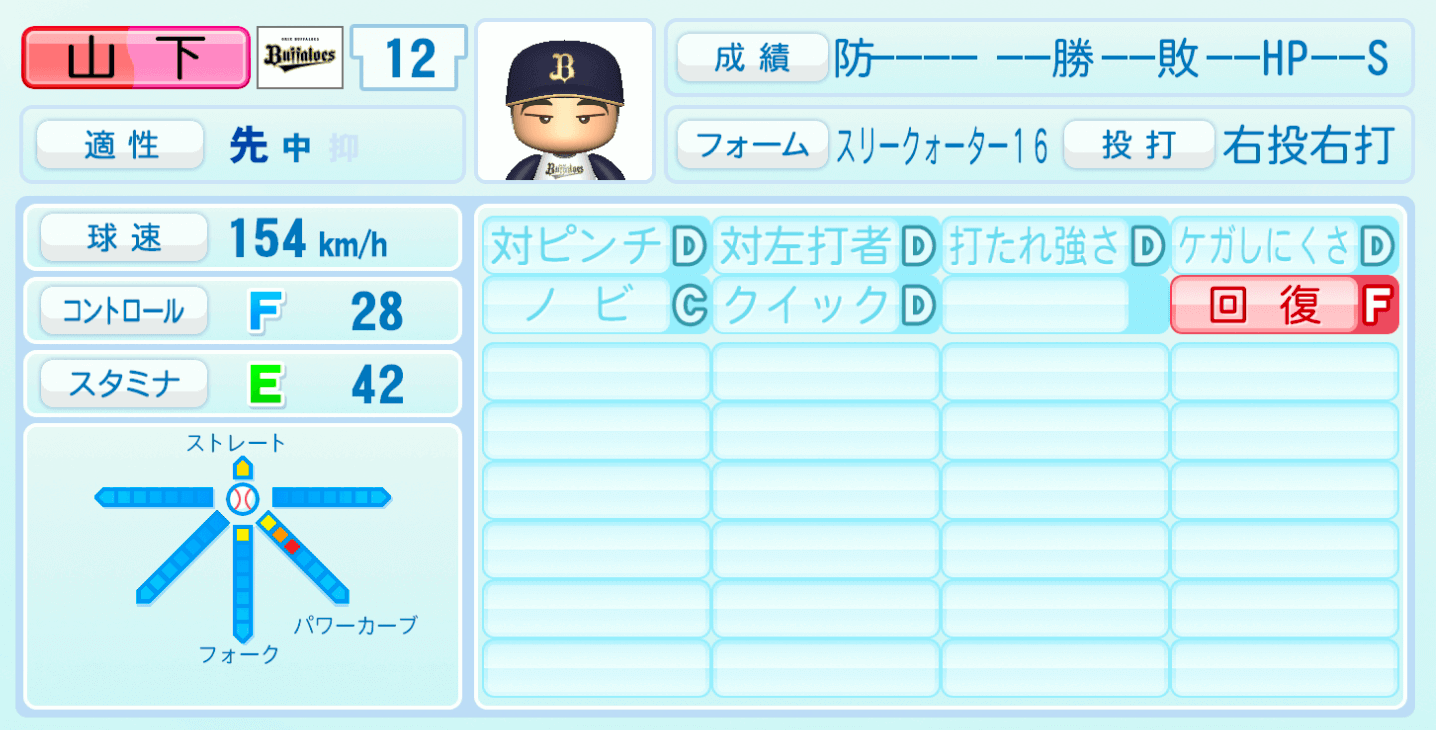 | 適性 | 先/中 | 球速 | 154km/h |