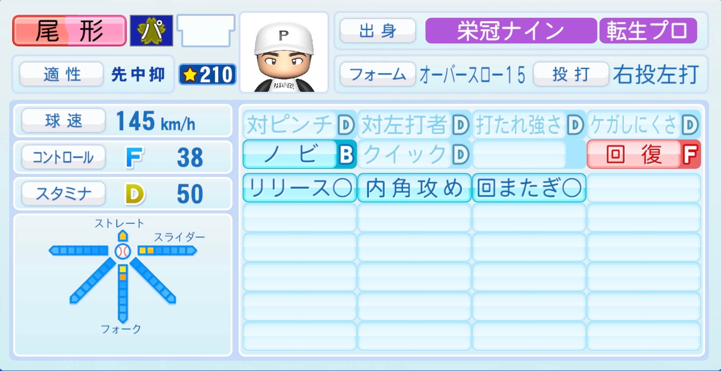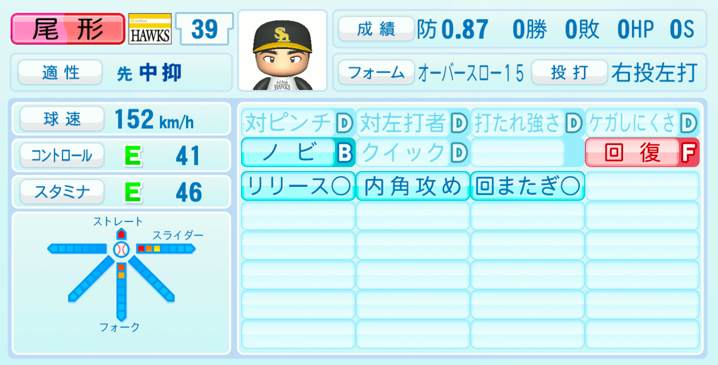 | 適性 | 中抑/先 | 球速 | 152km/h |