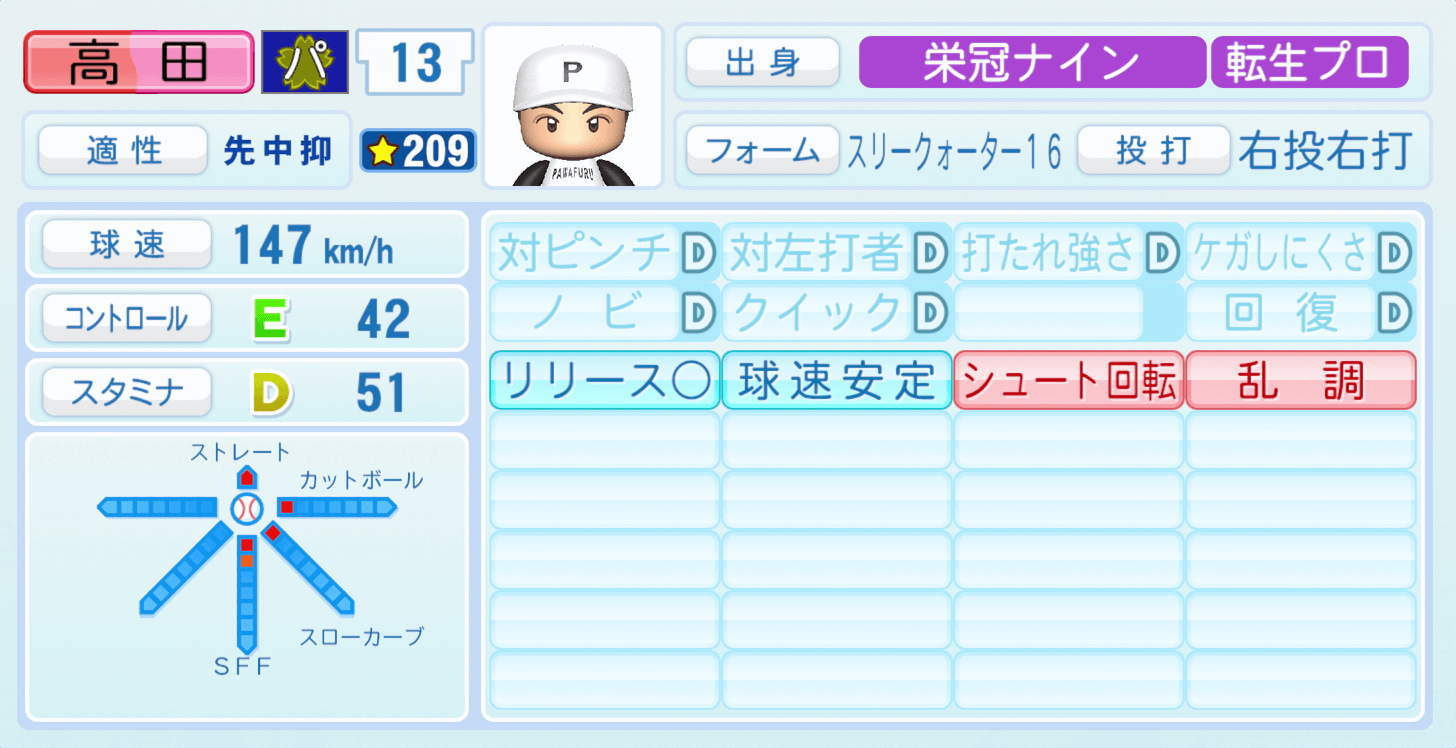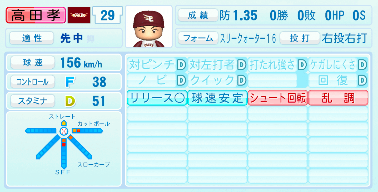 | 適性 | 先中/- | 球速 | 156km/h |