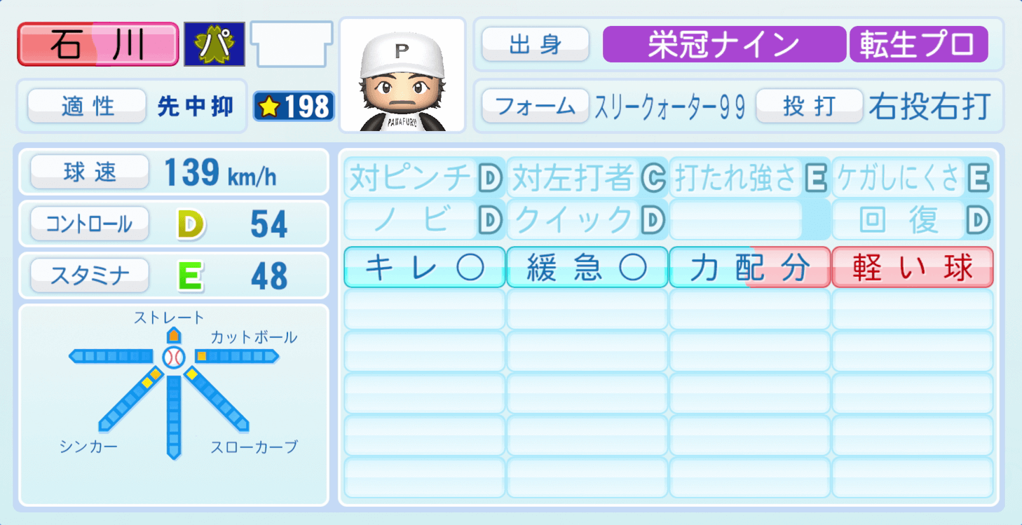 【パワプロ2022】石川歩の選手・特殊能力と転生情報