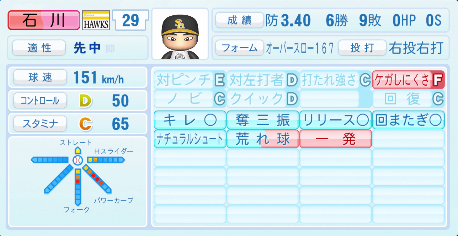 【パワプロ2022】石川柊太の選手・特殊能力と転生情報|ソフトバンク