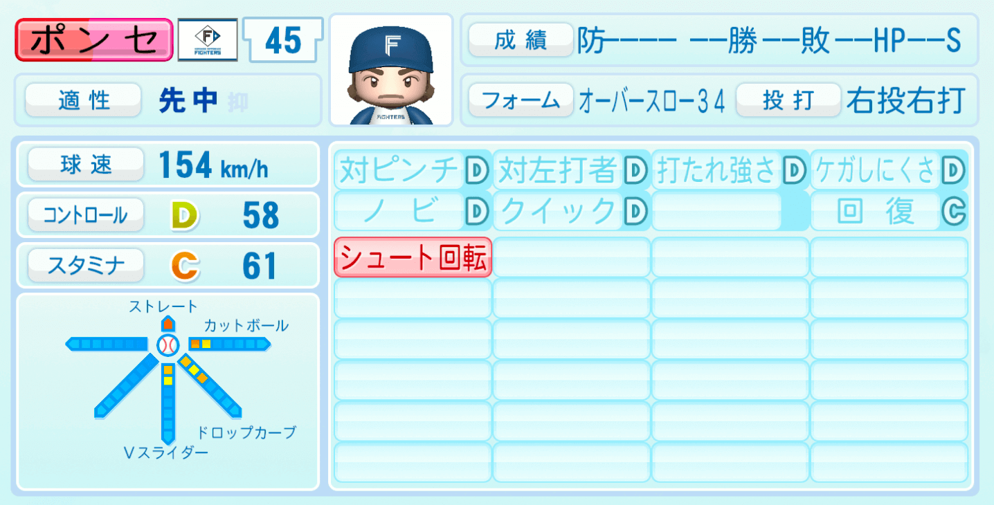 | 適性 | 先中/- | 球速 | 154km/h |