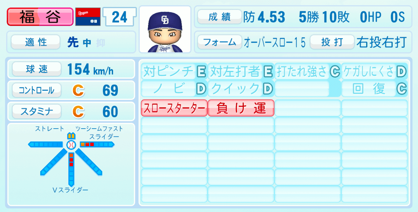 【パワプロ2022】福谷浩司の選手・特殊能力と転生情報|中日
