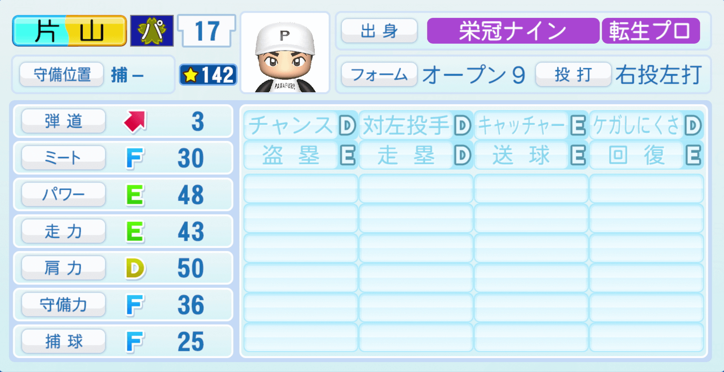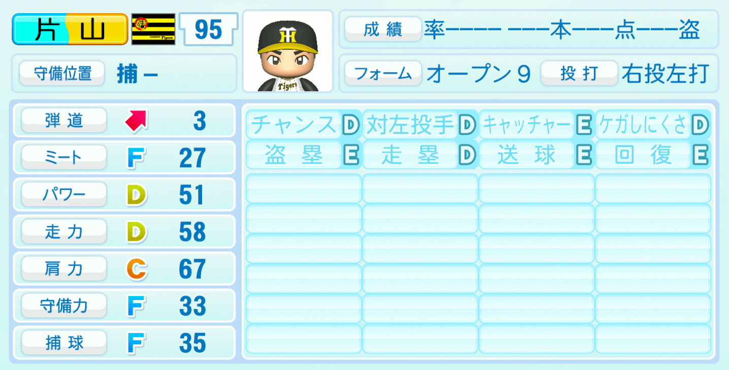 | キャッチャーE | ケガしにくさD |