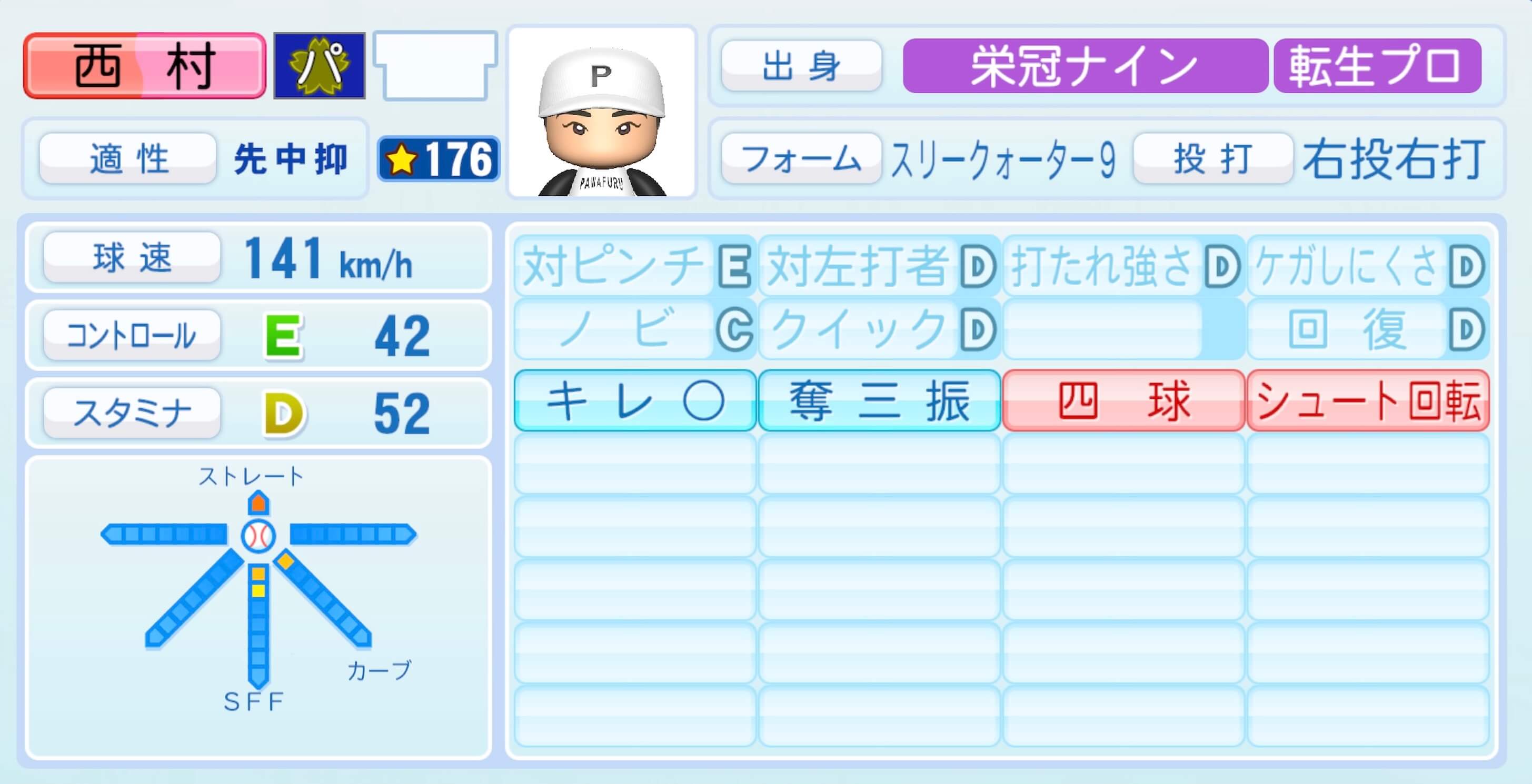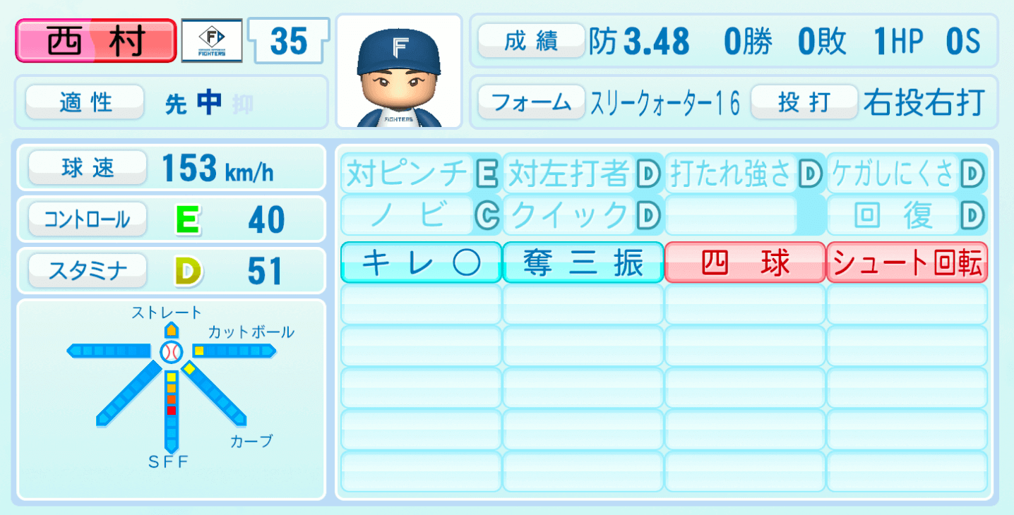 【パワプロ2022】西村天裕の選手・特殊能力と転生情報|日本ハム
