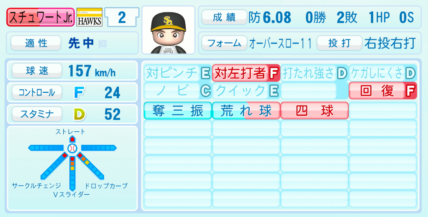 | 守備位置 | 弾道 | ミー | パワ | 走力 | 肩力 | 守備 | 捕球 |